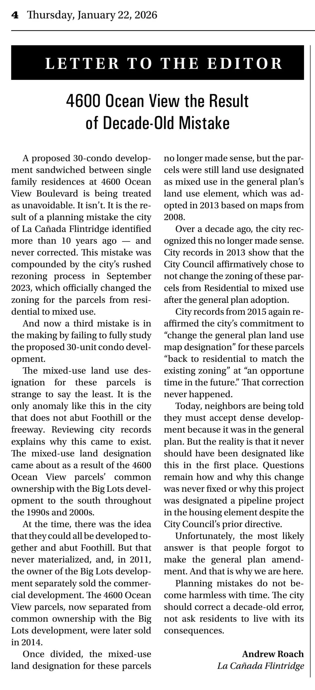 Letter to Editor in Outlook Valley Sun 1/22/26: